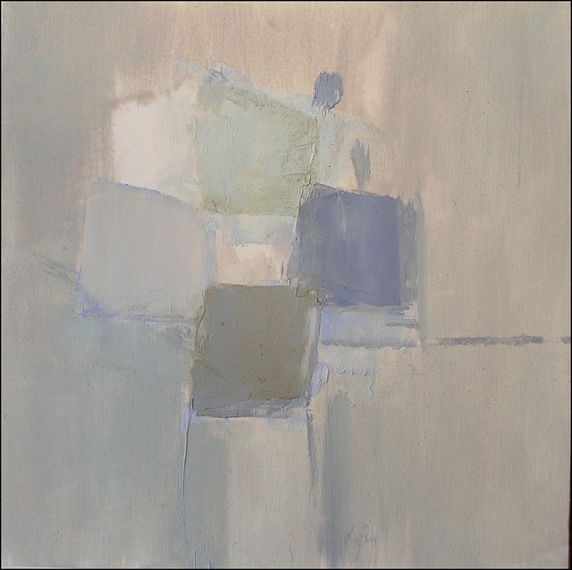 Les couleurs ont perdu un peu de leur splendeur l’ensemble est plus éteint. Serait-ce la brume qui vient recouvrir le décor.La lumière semble venir de derrière. On s’éloigne de la représentation des carrelets. Même esprit de composition que dans le tableau aux carrés bleus que j’aime beaucoup. Bises.