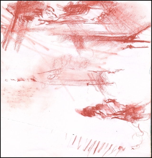 Et remplit les nuages de son crayon –rouge ocré, rouge ocré, rouge ocré