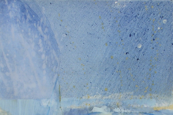 1. Le white spirit que j’utilise pour diluer la peinture la rend très liquide. En cela, oui, nous sommes proches de l’aquarelle, Charles Lycaon. Pour cette dernière il est d’usage que l’on « sente » encore le papier; et que les couleurs demeurent très transparentes. Ici il y a eu plusieurs projections ou applications de peinture sans que la première couche soit effacée.