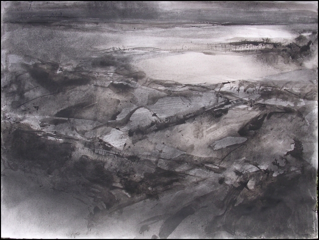 C’est un fusain qui m' »élève » sans me donner le vertige: je me sens complètement ancrée dans ce petit matin, dans ce paysage -ma réalité , et à la fois légère, portée par le plaisir de la rêverie qui me murmure l’incommensurable beauté de nos humbles existences. A hauteur humaine.
